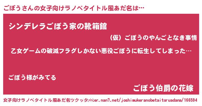 | 意味不明あだ名 | 『住所不定無職ごぼう(91歳)』 |