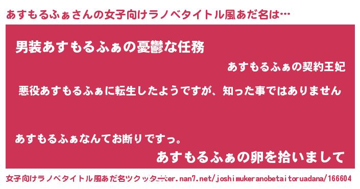 | 男性向けラノベタイトル風あだ名 | 『この素晴らしい世界にあすもるふぁを!』 |