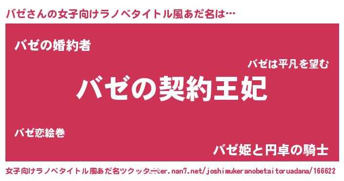 | 男性向けラノベタイトル風あだ名 | 『バゼという概念が存在しない退屈な世界 』 |