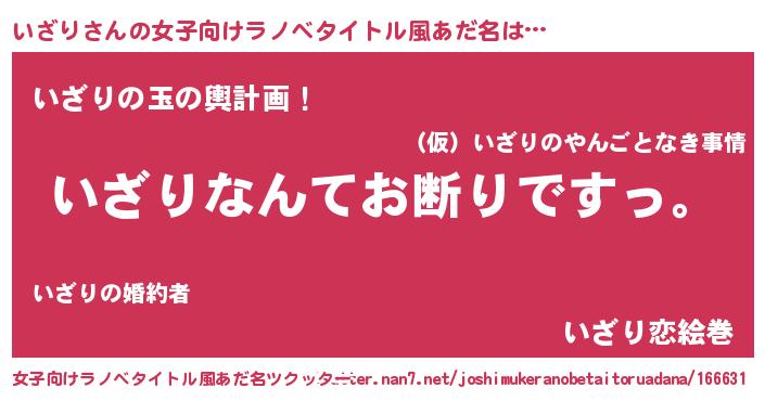 | 恥ずかしいあだ名 | 『イザリデラックス』『プリティーいざり』 |