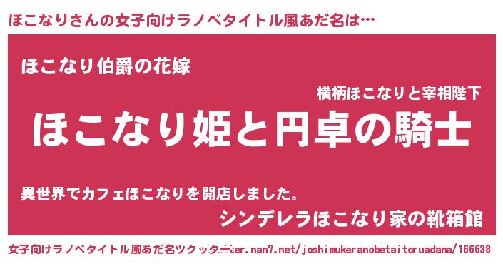 | 男性向けラノベタイトル風あだ名 | 『ホコナリアートオンライン』 |