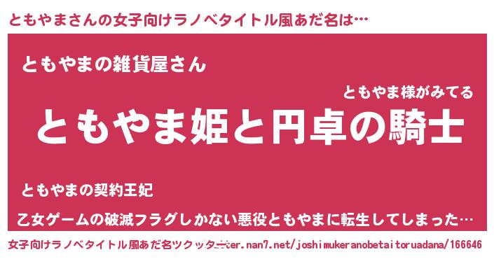 | ファンタジー風あだ名 | 『トモフェル』『エターナルトモヤマー』 |