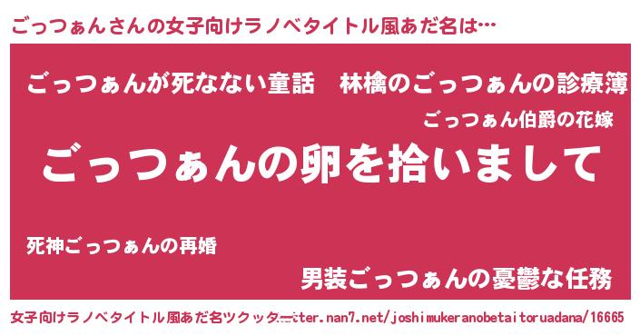 | 男性向けラノベタイトル風あだ名 | 『ダンジョンにごっつぁんを求めるのは間違っているだろうか』 |