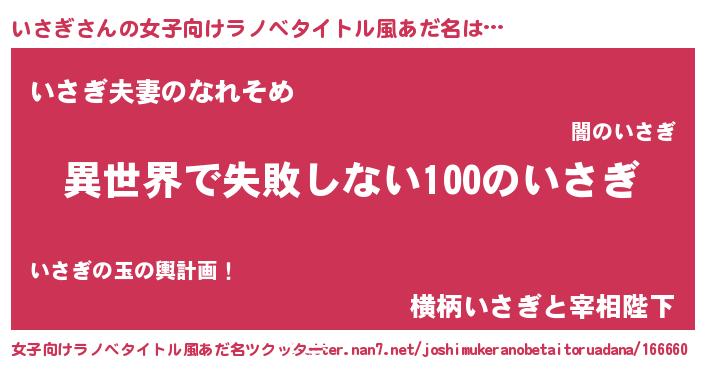 | ヘコむあだ名 | 『いさぎ(笑)』『いさを』『なまこ酢』 |