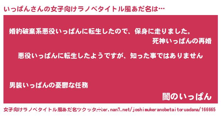 | 男性向けラノベタイトル風あだ名 | 『この素晴らしい世界にいっぱんを!』 |