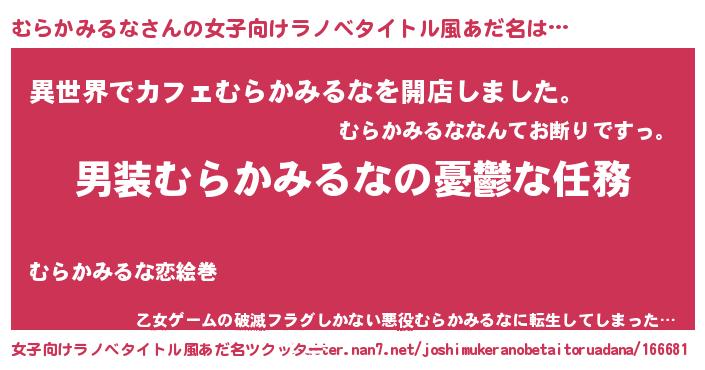 | 男性向けラノベタイトル風あだ名 | 『冴えないむらかみるなの育てかた』 |
