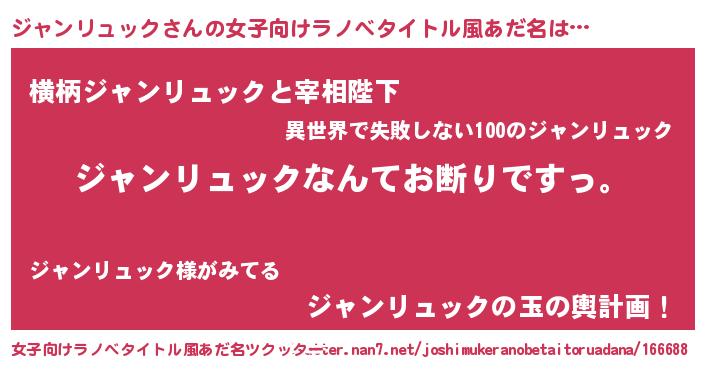 | 男性向けラノベタイトル風あだ名 | 『魔法科高校のジャンリュック』 |