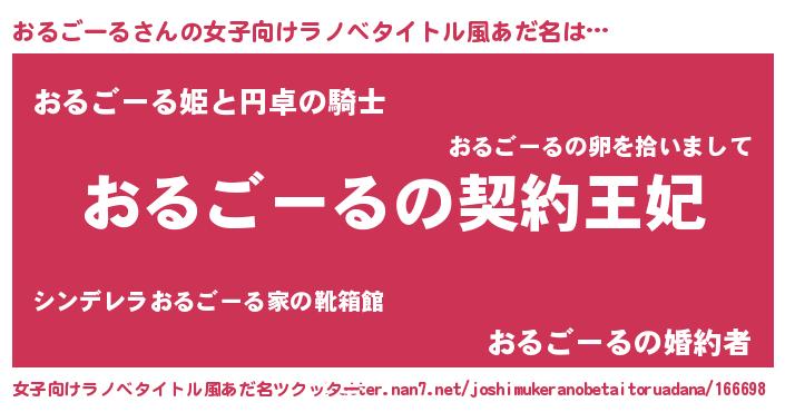 | 意味不明あだ名 | 『永久保存おるごーる』『自称おるごーる』 |