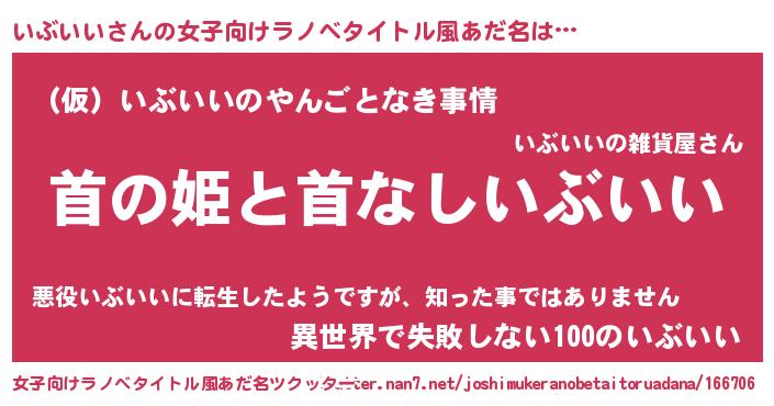 | 男性向けラノベタイトル風あだ名 | 『はたらくいぶいいさま!』 |