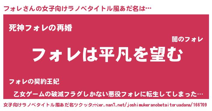 | 胡散臭い通販商品みたいなあだ名 | 『信頼と実績のネックレス…その名も「フォレ」』 |