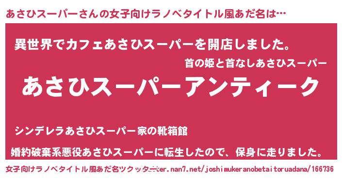 | 意味不明あだ名 | 『自称あさひスーパー』 |