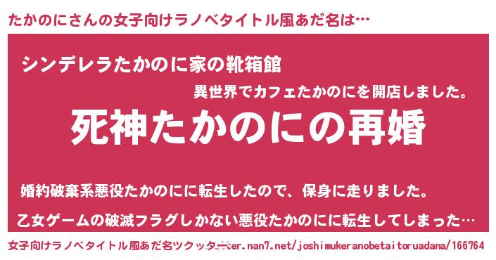 | 伝説のあだ名 | 『救世主となる占い師たかのに』 |