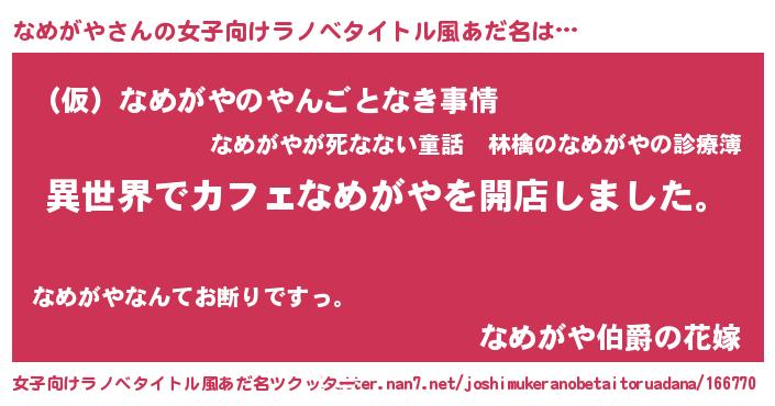 | ヘコむあだ名 | 『なめがや(小並感)』『なめにゅー』 |