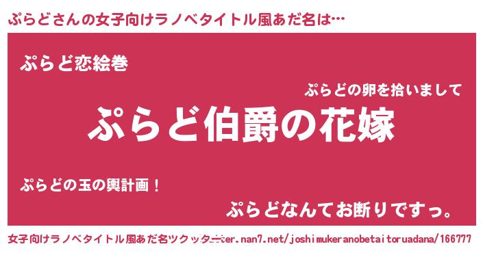 | 男性向けラノベタイトル風あだ名 | 『やはりぷらどの青春ラブコメはまちがっている 』 |