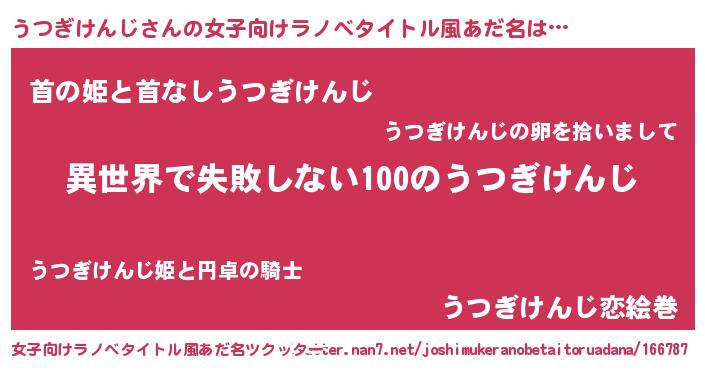 | 意味不明あだ名 | 『永久保存うつぎけんじ』 |