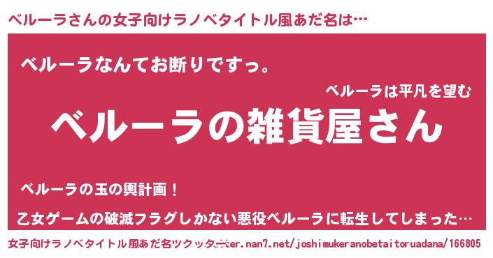 | 男性向けラノベタイトル風あだ名 | 『やはりベルーラの青春ラブコメはまちがっている 』 |