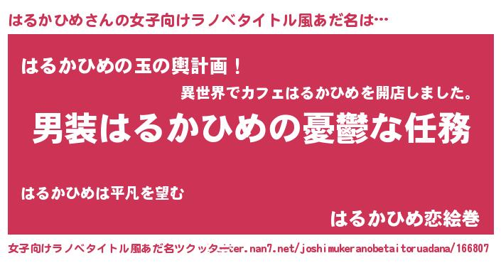 | 伝説のあだ名 | 『救世主となる占い師はるかひめ』 |