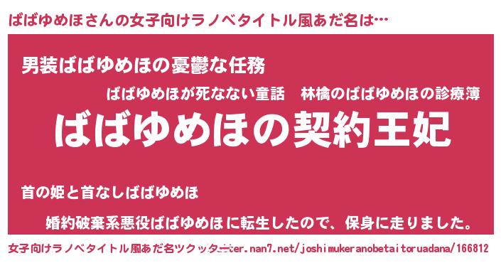 | 意味不明あだ名 | 『永久保存ばばゆめほ』 |