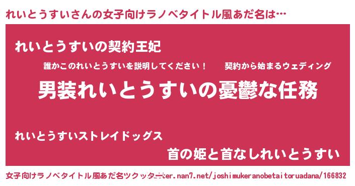 | 意味不明あだ名 | 『永久保存れいとうすい』 |
