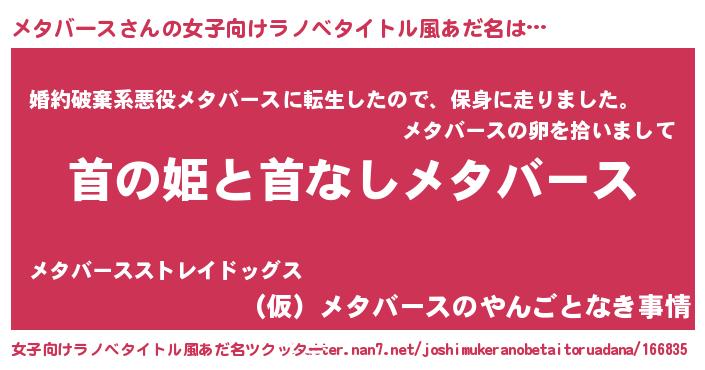 | 男性向けラノベタイトル風あだ名 | 『はたらくメタバースさま!』 |