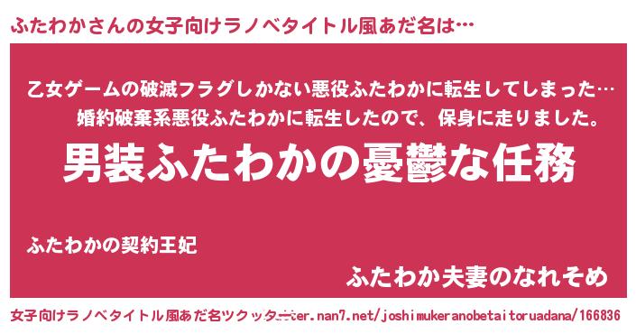 | 男性向けラノベタイトル風あだ名 | 『冴えないふたわかの育てかた』 |