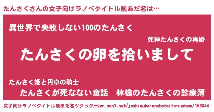 | 胡散臭い通販商品みたいなあだ名 | 『伝統あるサプリメント…その名も「たんさく」』 |