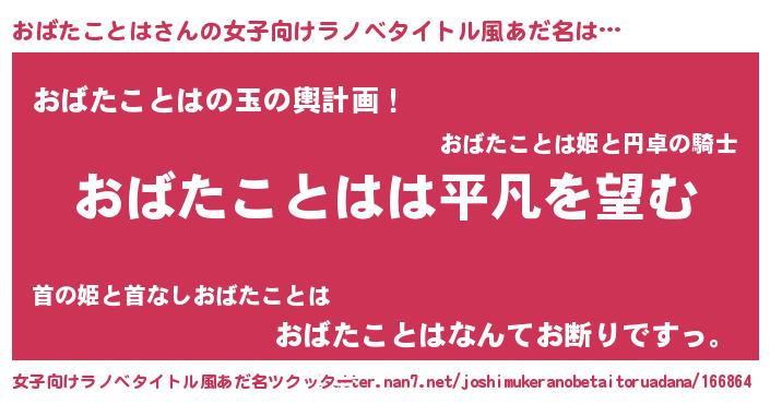 | 男性向けラノベタイトル風あだ名 | 『ダンジョンにおばたことはを求めるのは間違っているだろうか』 |