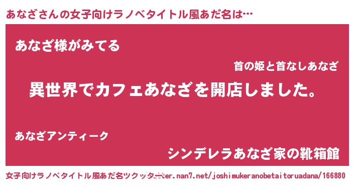 | ファンタジー風あだ名 | 『アナディッシュ』『ファントムアナス』 |