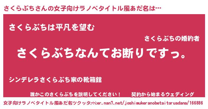 | 男性向けラノベタイトル風あだ名 | 『魔法科高校のさくらぶち』 |