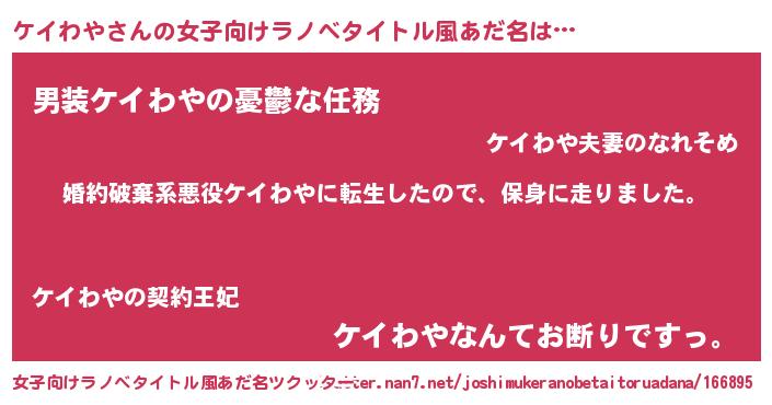 | 意味不明あだ名 | 『めかぶ科ケイわや属』『自称ケイわや』 |