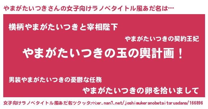 | 男性向けラノベタイトル風あだ名 | 『転生したらやまがたいつきだった件』 |