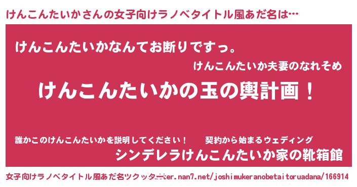 | 男性向けラノベタイトル風あだ名 | 『転生したらけんこんたいかだった件』 |