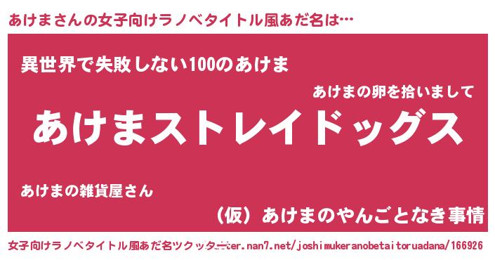 | 男性向けラノベタイトル風あだ名 | 『Re:あけまから始める異世界生活』 |