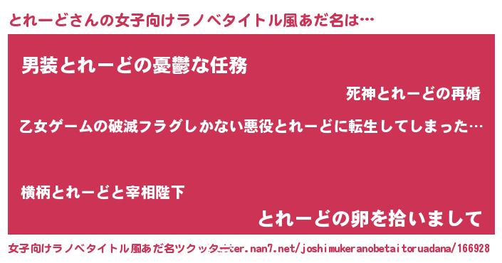 | 意味不明あだ名 | 『住所不定無職とれーど(89歳)』 |