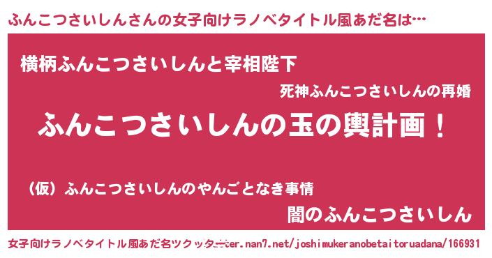 | 男性向けラノベタイトル風あだ名 | 『転生したらふんこつさいしんだった件』 |
