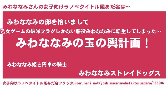| 男性向けラノベタイトル風あだ名 | 『みわななみ~年齢イコール彼女いない歴の魔法使い~』 |
