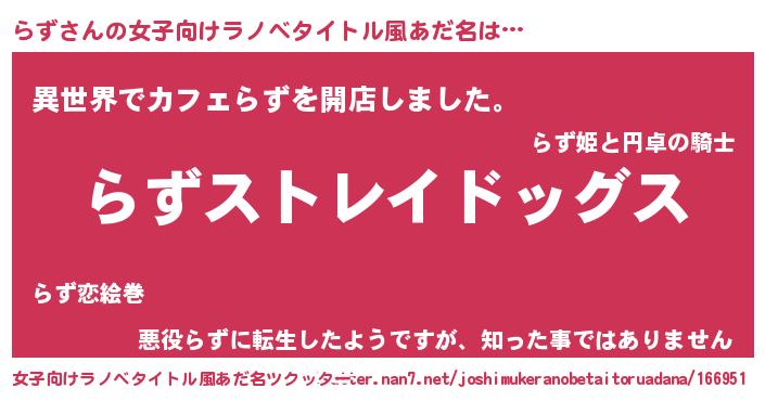 | 意味不明あだ名 | 『自称らず』『永久保存らず』 |