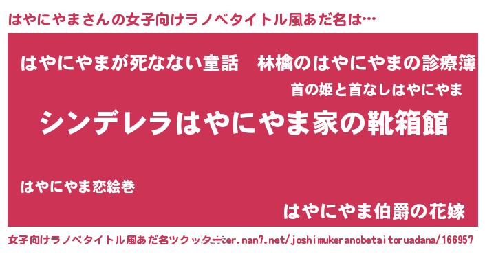 | 胡散臭い通販商品みたいなあだ名 | 『世界中を虜にした世界で10本だけ現存している希少なブランデー…その名も「はやにやま」』 |