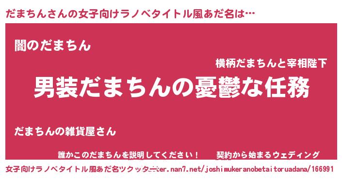 | 男性向けラノベタイトル風あだ名 | 『うちのだまちんが世界を掌握している!』 |