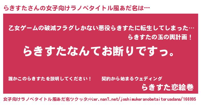 | 恥ずかしいあだ名 | 『ラキスタデラックス』『らきっちょ』 |