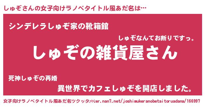 | 男性向けラノベタイトル風あだ名 | 『やはりしゅぞの青春ラブコメはまちがっている 』 |