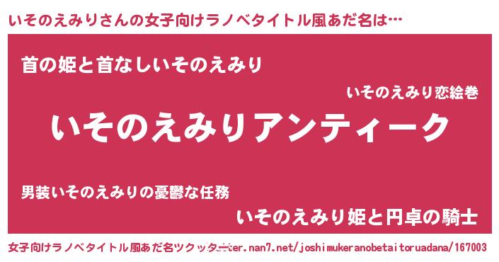 | 意味不明あだ名 | 『自称いそのえみり』 |