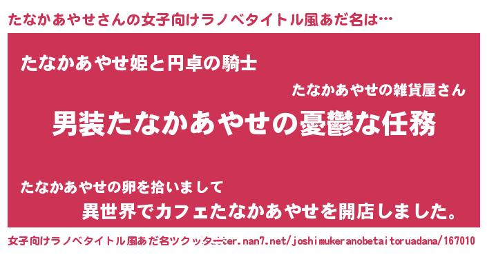 | ヒーロー風カッコイイあだ名 | 『スーパータナカアヤセ』『黄金騎士タナ』 |