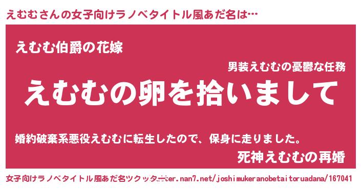 | ヒーロー風カッコイイあだ名 | 『幻影騎士エム』『ウルトラえむむマン』 |