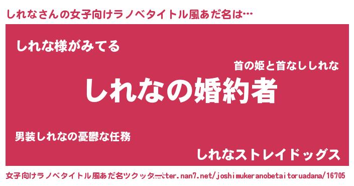| 胡散臭い通販商品みたいなあだ名 | 『運命の人と巡り会える高級そうな壺…その名も「しれな」』 |