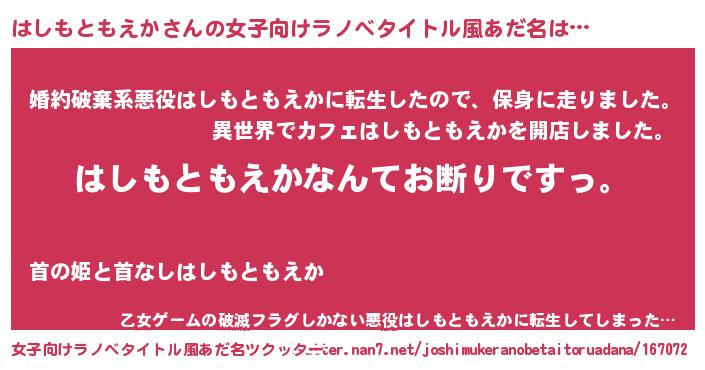 | 肩書あだ名 | 『はしもともえか閣下』 |