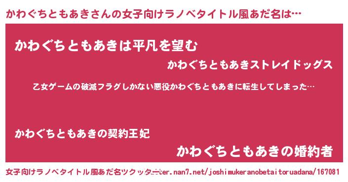 | 意味不明あだ名 | 『住所不定無職かわぐちともあき(4歳)』 |