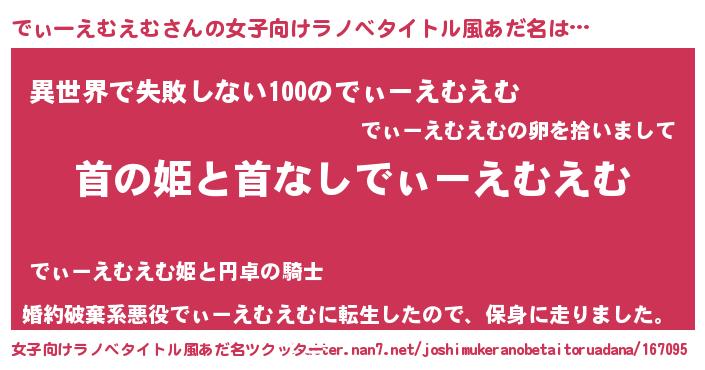 | 胡散臭い通販商品みたいなあだ名 | 『来世でも幸せになれる水素水…その名も「でぃーえむえむ」』 |