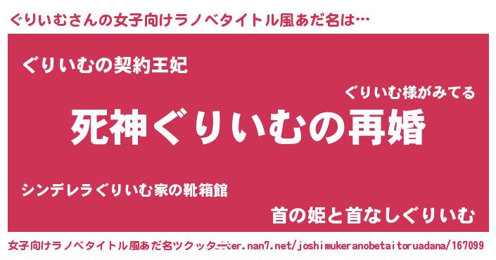| ヒーロー風カッコイイあだ名 | 『天空の使者ぐりいむ』『ネオグリイム』 |