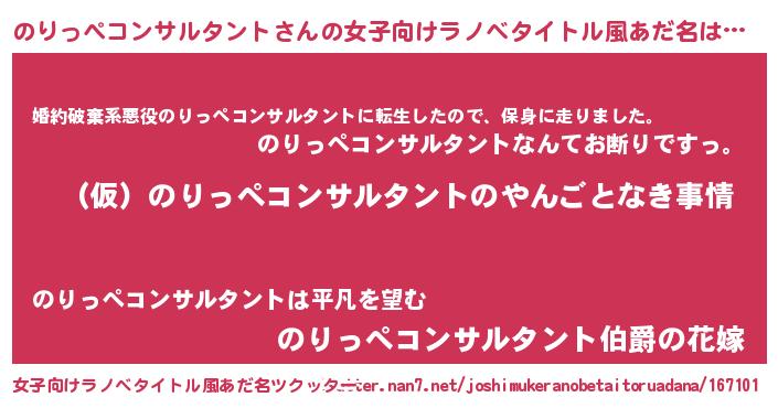 | 男性向けラノベタイトル風あだ名 | 『のりっぺコンサルタントの憂鬱』 |